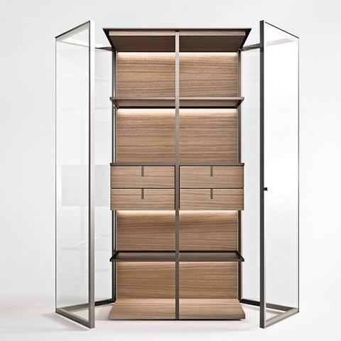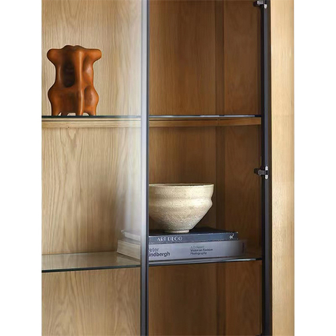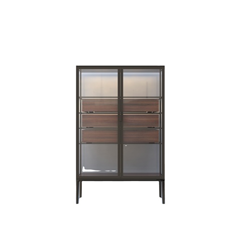 Walnut Drawer Glass Door Luxury Storage Cabinet with Aluminum Shelve Frame Customized