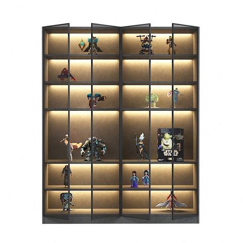 Luxury Brand Freestanding Cabinet Storage Led Light Aluminum Shelves Cabinet with Wood Drawers Display Cases Living Room Hotel