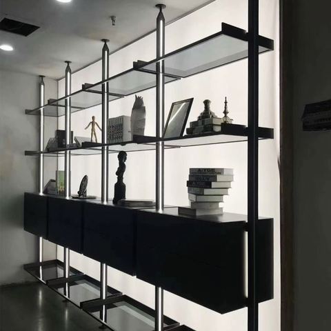 Modern Simple Led Light Pole System for Office Display Rack Minimalist Aluminium Profile Metal Wine Cabinet