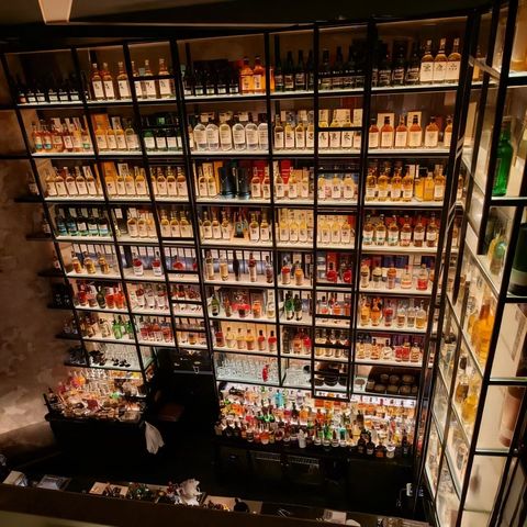 Özel Modern LED ışıklı mermer Backboard duvar şarap rafı gece kulübü mobilyası Pub şarap ekran Bar sayacı için
